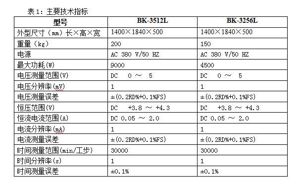 1、BK-3512L(雙CPU型)鋰離子電池自動檢測化成設(shè)備(1~5臺)或BK-3256L鋰離子電池自動檢測化成設(shè)備(1~10臺)。
